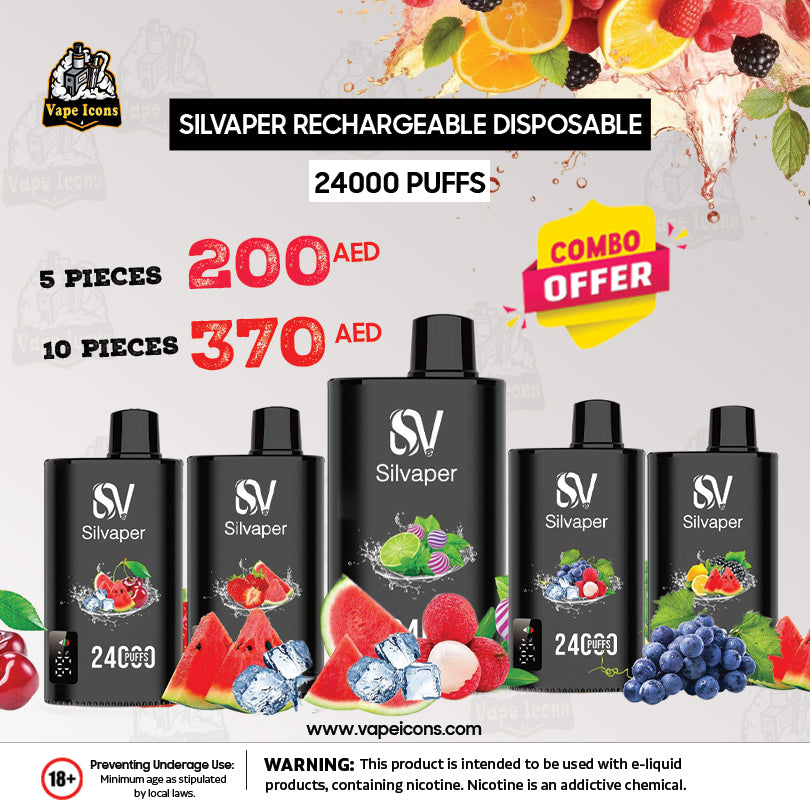 Experience the luxury and convenience of the Silvaper 24000 Puffs Disposable Vape, now available in Dubai, Abu Dhabi, and across the UAE. This product combines smooth design with cutting-edge technology, offering users a vaping solution that needs minimal effort while delivering maximum fulfilment. Perfect for both novices and experienced vapers, this vape stands out with its high performance, durability, and rich flavor choices.